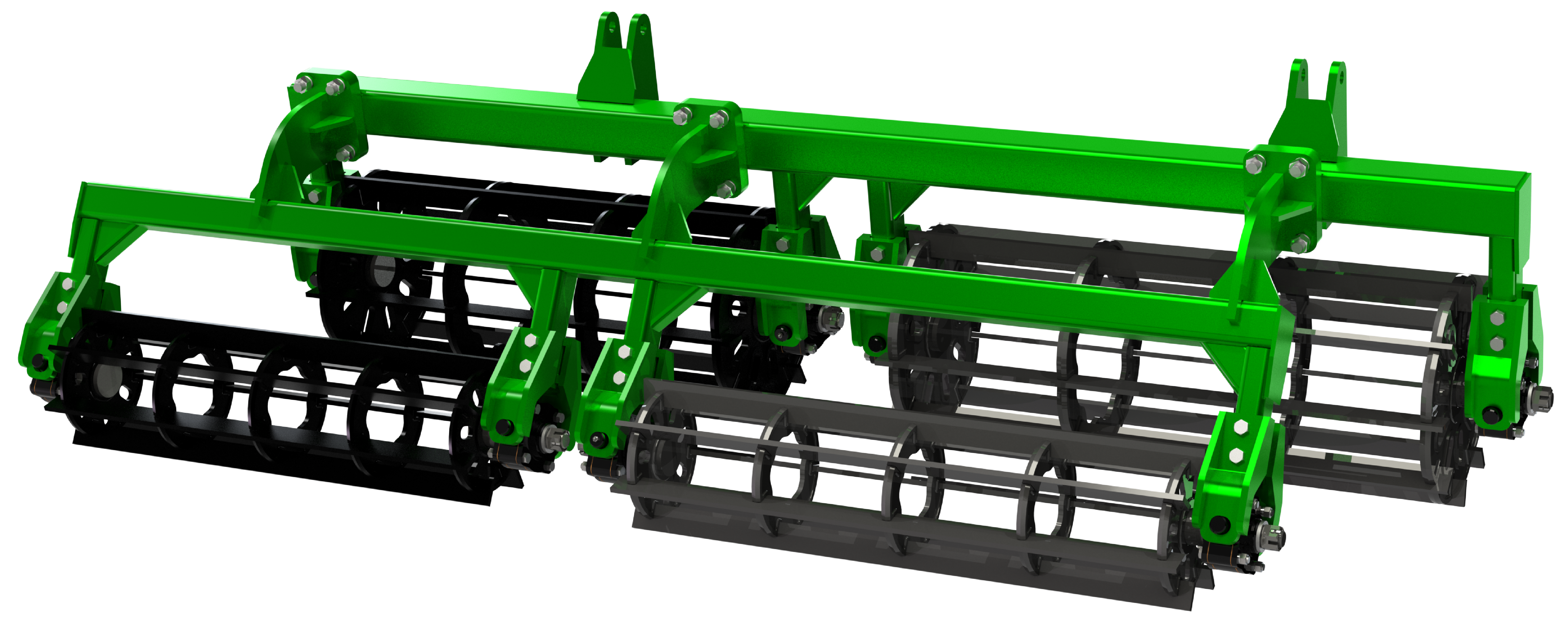 Die konstruktive Lösung liegt darin, dass auf den abgefederten individuellen Stützen die Doppelscheiben-Segmente montiert sind, die zweireihig auf dem Aggregatsrahmen angeordnet sind. Der Abstand zwischen den anliegenden Scheiben von 250 mm, 1300 mm zwischen den Reihen beim Anstellwinkel von 15 grad. und Neigungswinkel der Scheiben von 6 ? gewährleistet eine volle Überschneidung der Unkraut, eine intensive Vermischung des Bodens und schließt eine Verstopfung des Aggregats zwischen den Reihen bei Bearbeitung der verschmutzten Ackerflächen aus. Dabei ist der Zugwiderstand im Vergleich mit gleichartigen Werkzeugen um 15 — 20 % reduziert.