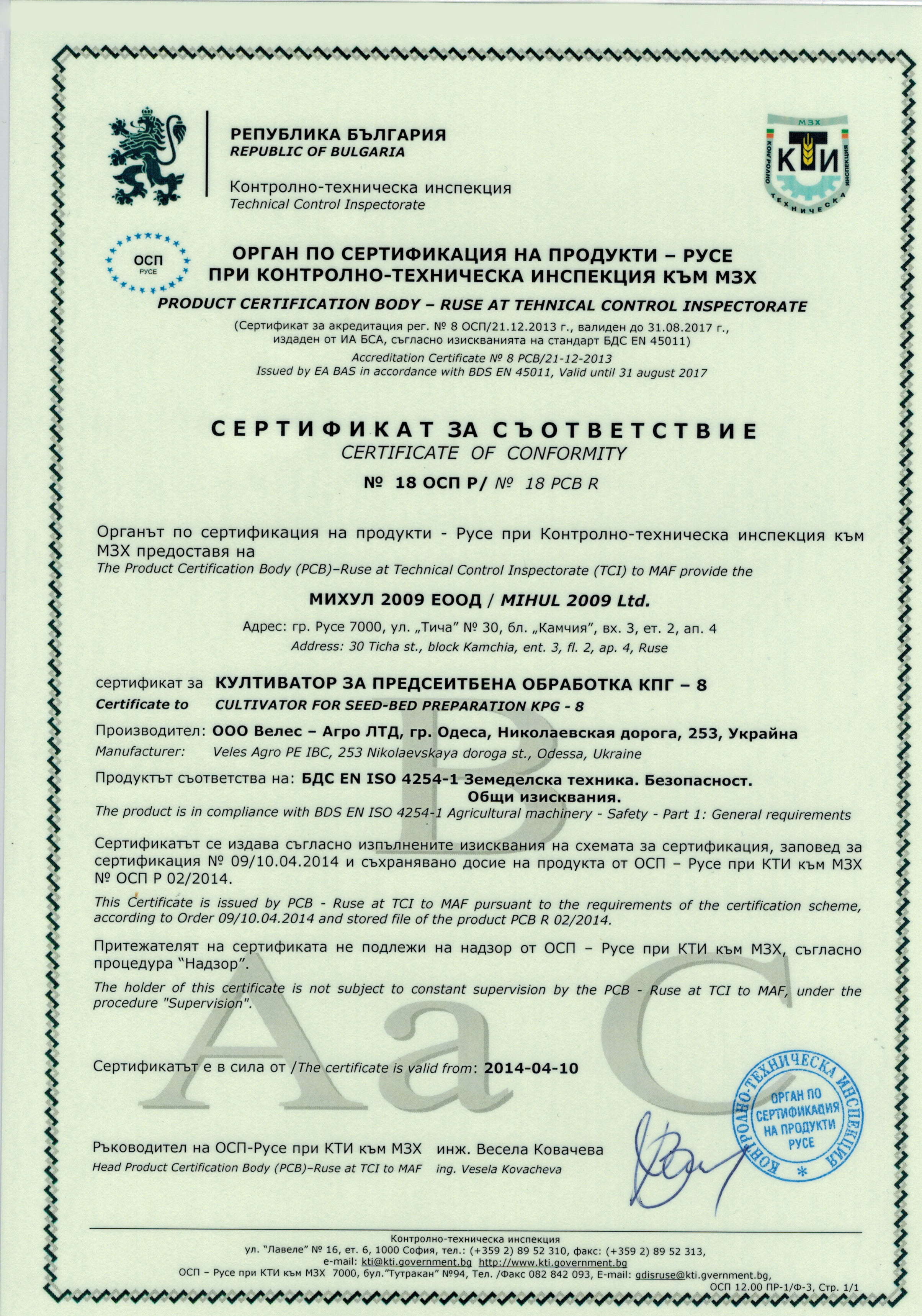 Der Grubber KPG 8.2 fünfreihig ist für volle vor der Saat Bodenbearbeitung und Brachenbearbeitung mit gleichzeitigem Eggen, mit einem spezifischen Widerstand des Bodens von bis 0,5 kgf/cm2 (0,05 MPa) und einer Feuchtigkeit von bis 27% bestimmt.