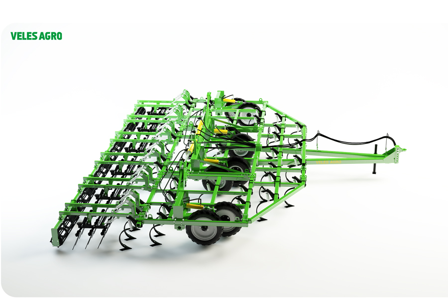 Die Bearbeitungstiefe wird mit den Laufbegrenzern der Stange der Hydrozylinder mittels der einfache Umstellung der Regelringe eingestellt.Die für Betrieb des Grubbers notwendige Leistung hängt von Typ und Feuchtigkeit des Bodens, Form der Grubberzinke, Menge der Ernterückstände auf der Feldoberfläche, Tiefe der Bodenbearbeitung, Betriebsgeschwindigkeit und von mehreren anderen Faktoren ab.Es kann die Leistung von mindestens 20 — 27 PS für ein Meter der Aufnahmebreite des Grubbers erforderlich sein.