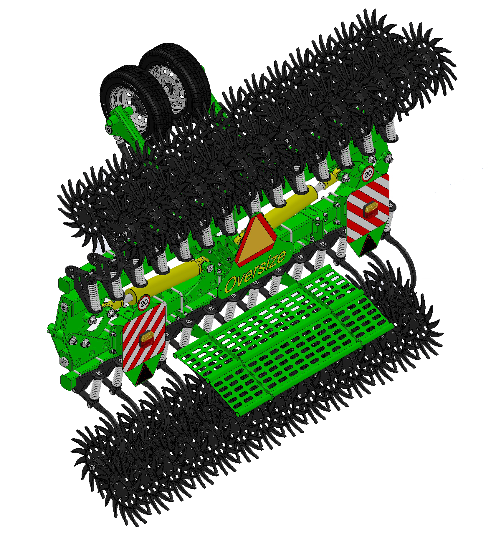 Durch das Nadel-Tandem der Arbeitskörper, das an dem Arbeitskörper des Pendeltyps befestigt ist, können Sie die Arbeitsfläche perfekt kopieren. Die elastische Federbein- und Federsicherheitsvorrichtung minimiert Anlagenverletzungen während der Verarbeitung. Die zweireihige Lagerung des Arbeitskörpers mit einer Lippendichtung erfordert keine Wartung und bietet eine maximale Lebensdauer. Stirnräder des Arbeitskörpers sind so konstruiert, dass sie schräg in den Boden eindringen und so ein maximales Eintauchen, Mulchen und Lockern der Feldoberfläche gewährleisten. Das Sperrgitter verhindert, dass Rückstände in das Sichtglas und die Kraftspiegel gelangen.