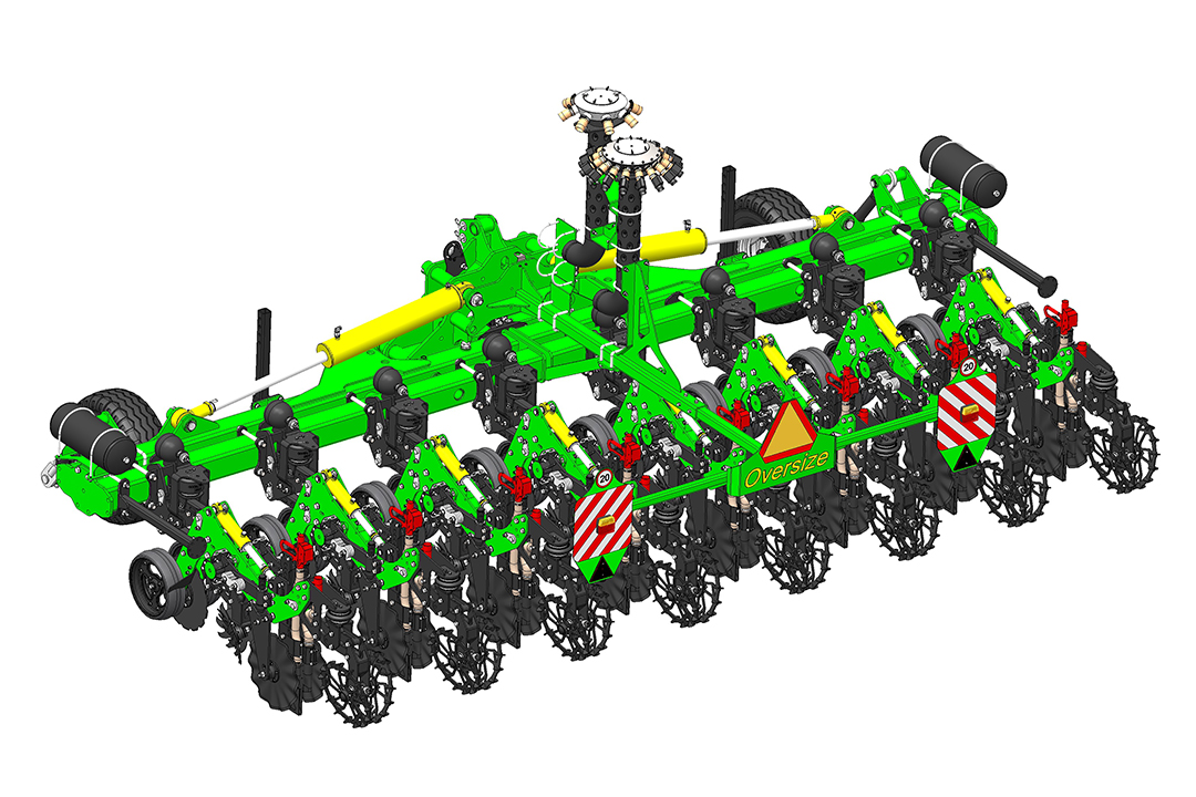 HERCULES ist für die Streifensaat zur Aussaat von Industriekulturen mit gleichzeitiger Düngung ausgelegt. Das Gerät verarbeitet Streifen mit einer Breite von 150 bis 200 mm bis zu einer Tiefe von 220 mm. Durch die Bearbeitung von nur 30 % der zukünftigen Saatfläche können Kosteneinsparungen bei der Haupt- und Vorsaatbearbeitung erzielt werden. Die behandelten Streifen speichern Feuchtigkeit gut, erwärmen sich im Frühjahr schnell und bieten angenehme Bedingungen für die Entwicklung von Reihenkulturen. Die Stoppelreste, die das Gerät in den Gängen einschließt, verhindern das Aufkeimen von Aas und Unkraut. Aufgrund des Temperaturunterschieds zwischen Boden und Ernterückständen (Taupunkt) sammelt sich Feuchtigkeit zwischen dem Boden und den Ernterückständen an. Mit Hilfe von drei unabhängigen Pneumatikkreisen wird der Druck präzise eingestellt: abschnittsweise je nach Widerstand des Bodens; Reihenreiniger je nach Menge der Ernterückstände; Druckräder zum Zerkleinern von Schollen und Verdichten des Bodens. Die Einstellung erfolgt über eine spezielle Fernbedienung in der Traktorkabine.