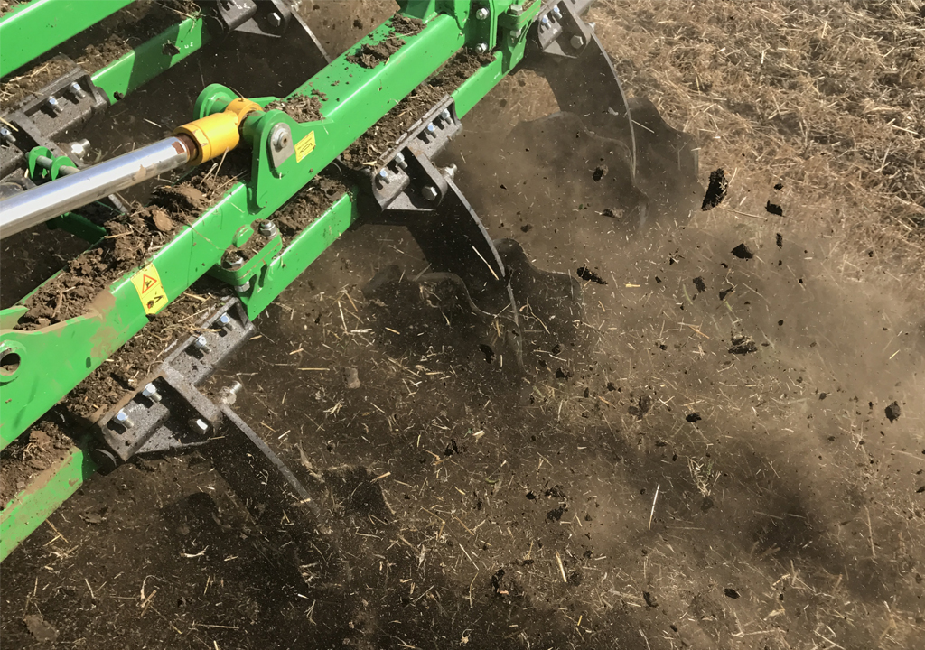 Um ein Austrocknen und Reißen des Bodens nach der Ernte, insbesondere von frühem Getreide, zu verhindern und eine gleichmäßige Verteilung der Ernterückstände (Stroh) auf dem Feld zu erreichen, muss die Verti-till-Behandlung diagonal durchgeführt werden.