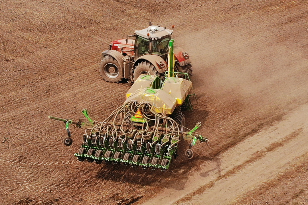 Aussaat in einer Reihe mit 400 oder 700 mm Reihenabstand.