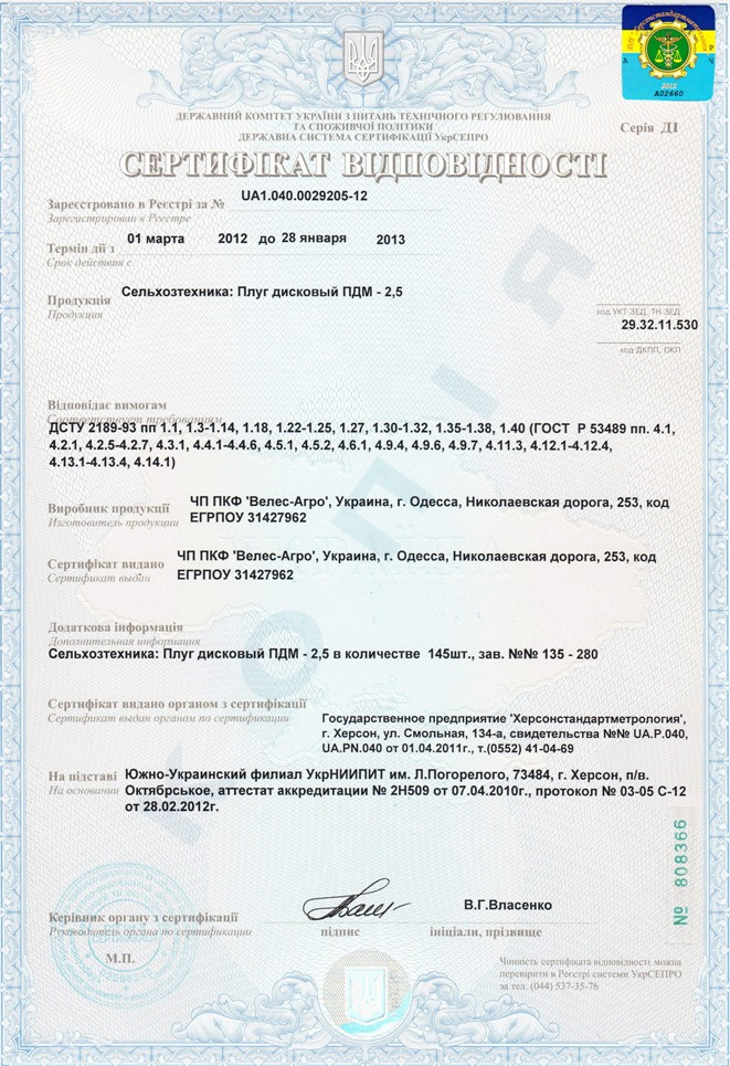 Плуги дискові серії PDM призначені для підготовки ґрунтів, що не засмічені плитняком та іншими перешкодами, під посів зернових та технічних культур шляхом розпушування поверхні поля на задану глибину з питомим опором ґрунту до 0,9кг/см², твердістю 35 кгс/см² і вологістю до 27%. З регульованням міжсліду.