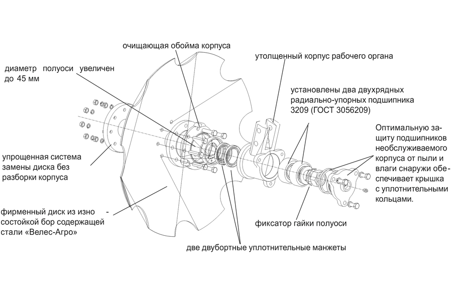 Конструктивні переваги роботи необслуговуваного корпусу дискової борони PDM-1.8 (2):