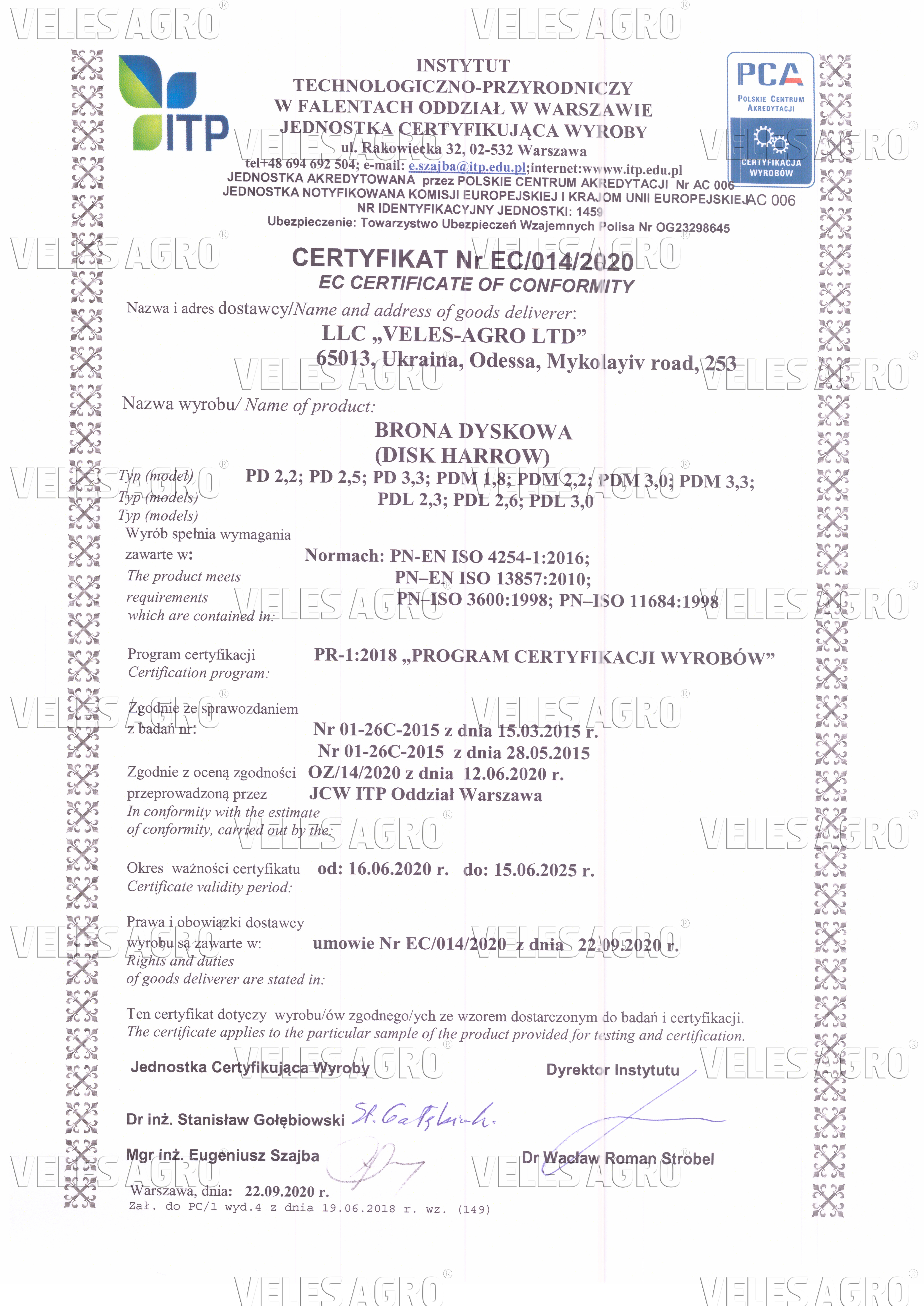 CSN EN ISO 12100‒2, CSN EN ISO 12100‒2/A1, CSN EN ISO 1050, CSN EN ISO 4254‒1, CSN EN ISO 11684
