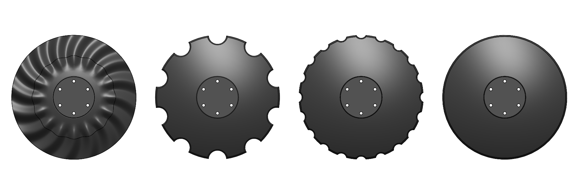 4 — гладкий диск является классическим решение для дискового лущильника, имеет одинаковый износ по всей длине рабочей кромки.
