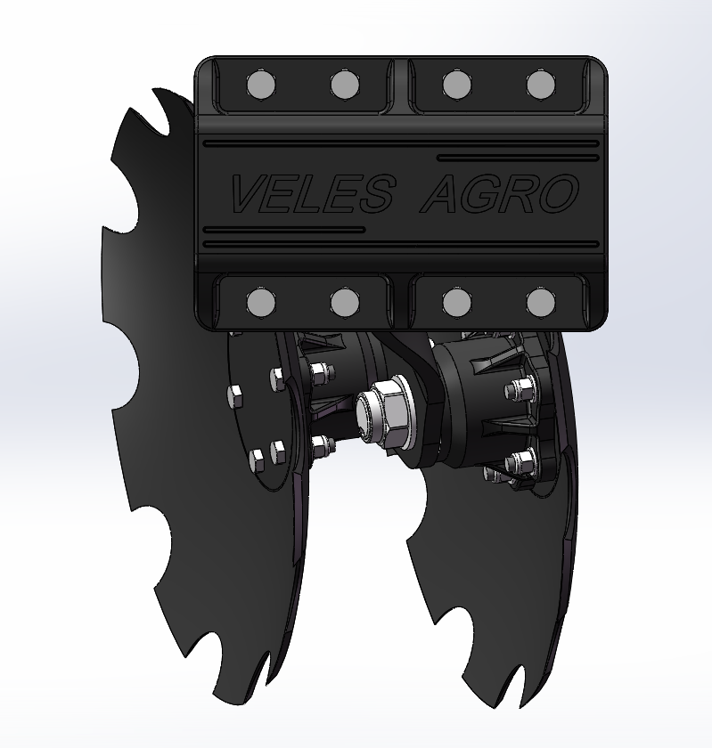 Компания VELES AGRO разработала уникальный ножевой каток, который доступен в качестве опции для дисковых борон линейки KRONOS с шириной захвата 4, 5, 6, 8 и 11 метров. Каток устанавливается спереди дисков, в работе он измельчает растительные остатки в поперечном направлении, а диски агрегата в продольном. Основное назначение — это измельчение пожнивных грубо стебельных остатков таких как кукуруза, подсолнечник, рапс. Регулировка глубины осуществляется гидроцилиндром, а накидные шайбы позволяют произвести точную фиксацию в выбранном положении.