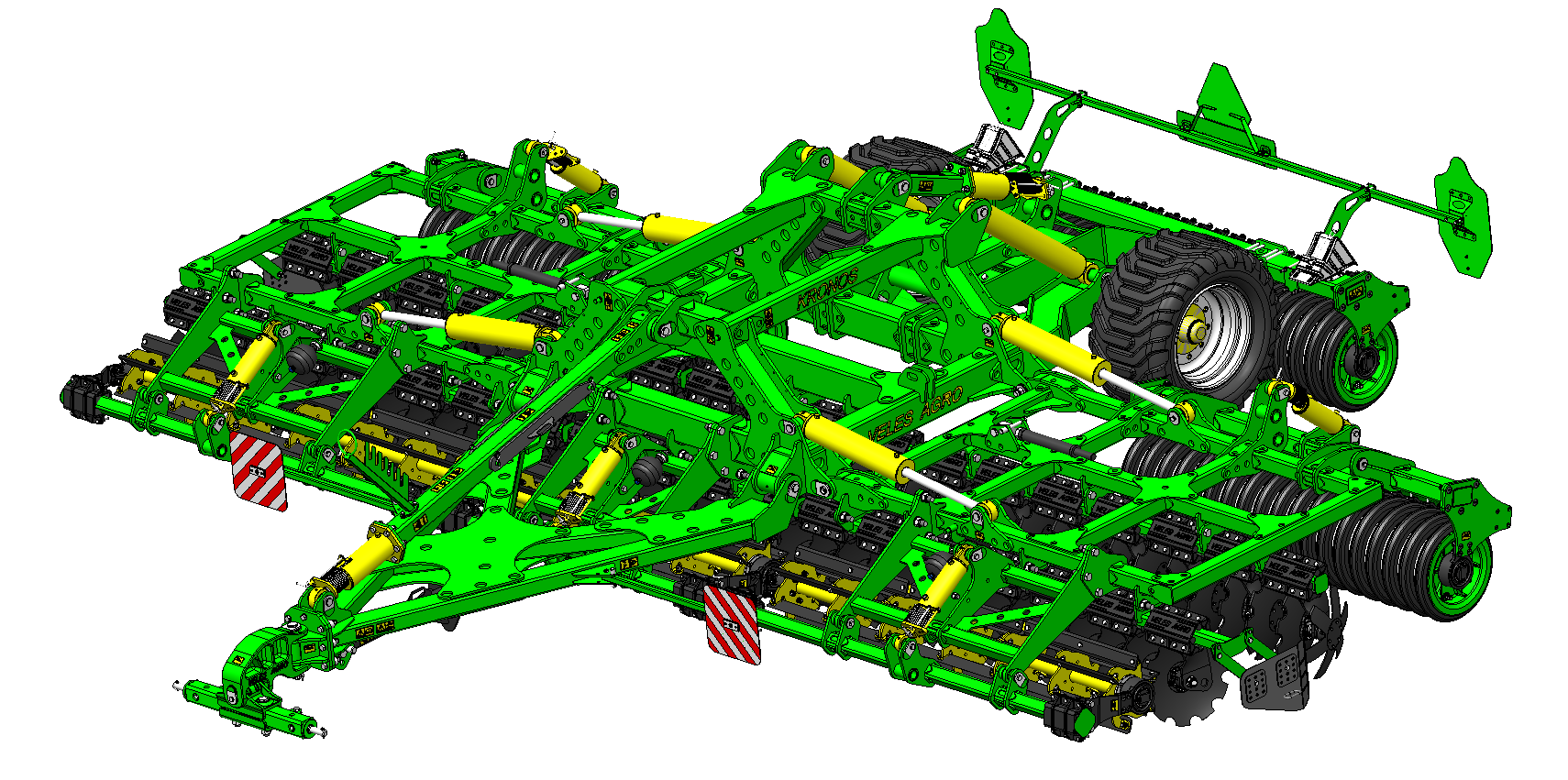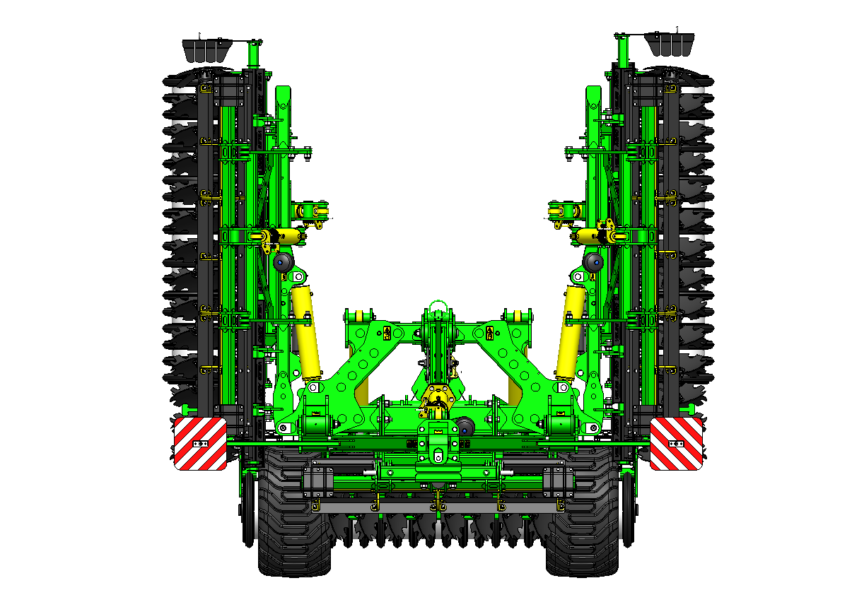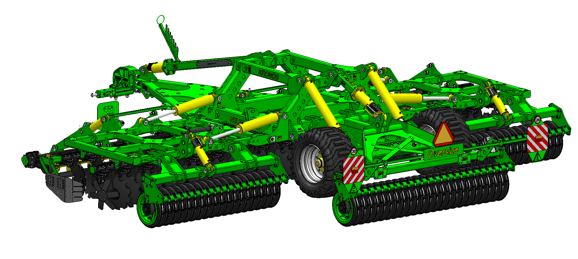 Для комфортной и безопасной транспортировки система сложения дисковых лущильников KRONOS позволяет складываться в три метра по ширине и менее 4 метров по высоте, что соответствует всем европейским стандартам.
