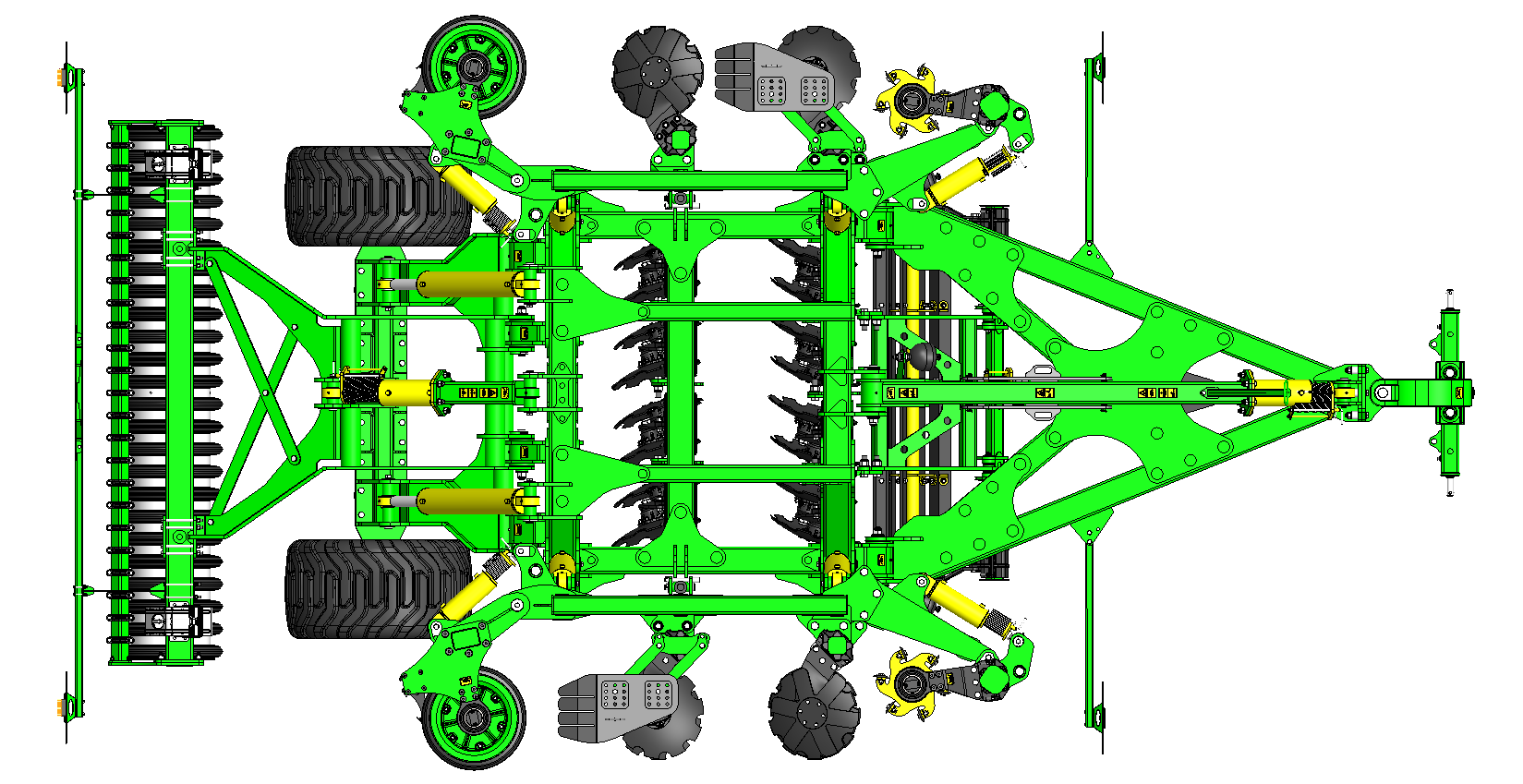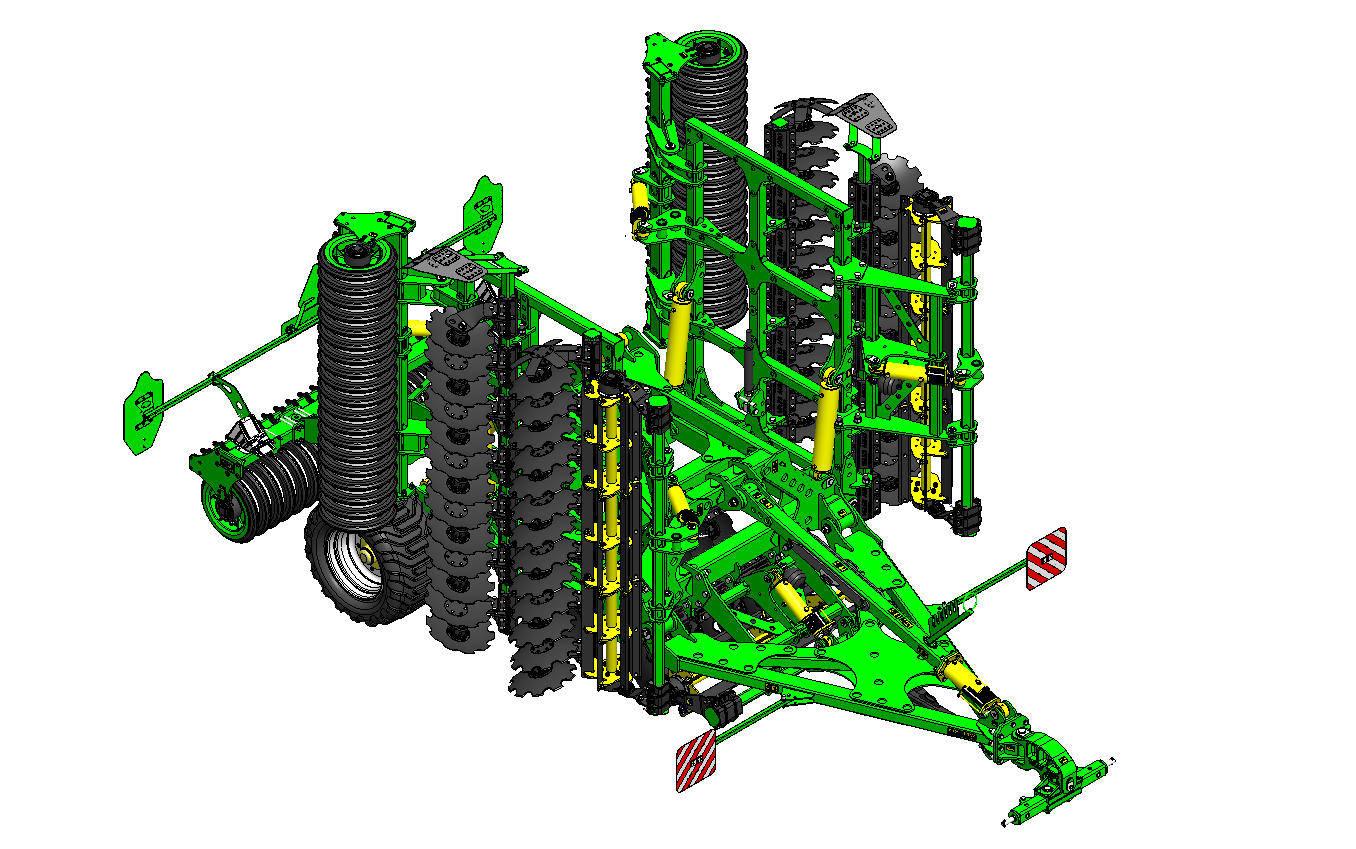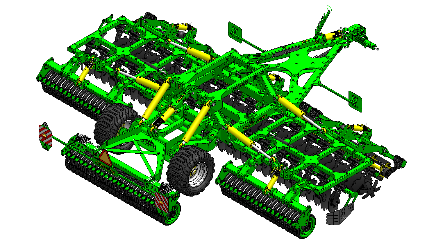Для комфортной и безопасной транспортировки система сложения дисковых лущильников KRONOS позволяет складываться в три метра по ширине и менее 4 метров по высоте, что соответствует всем европейским стандартам.
