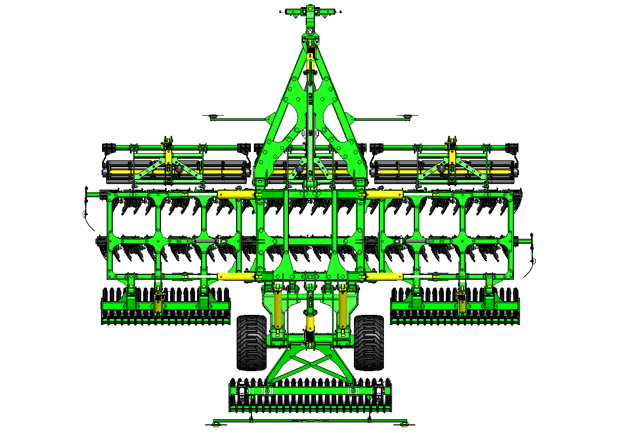 В передней части, дисковая борона KRONOS дополнительно агрегатируется специальным ножевым катком, а так же модели задних катков в режиме «360» доступны по ссылке