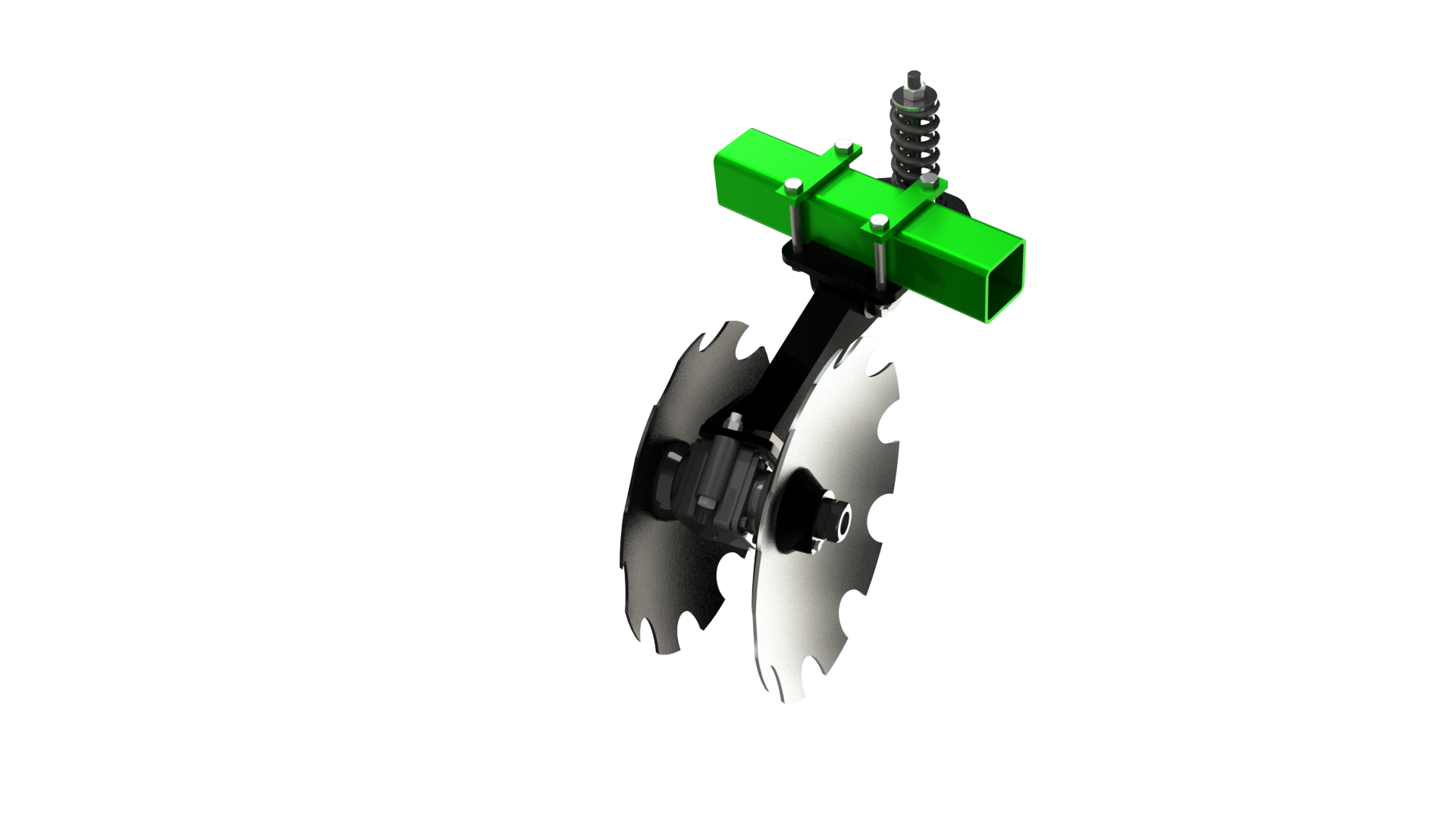 Во время обработки, подпружиненные стойки режущего узла плавно обходят препятствие, осуществляя низкочастотные колебательные движения, за счет чего происходит самоочищение дисков от растительных остатков и налипания.