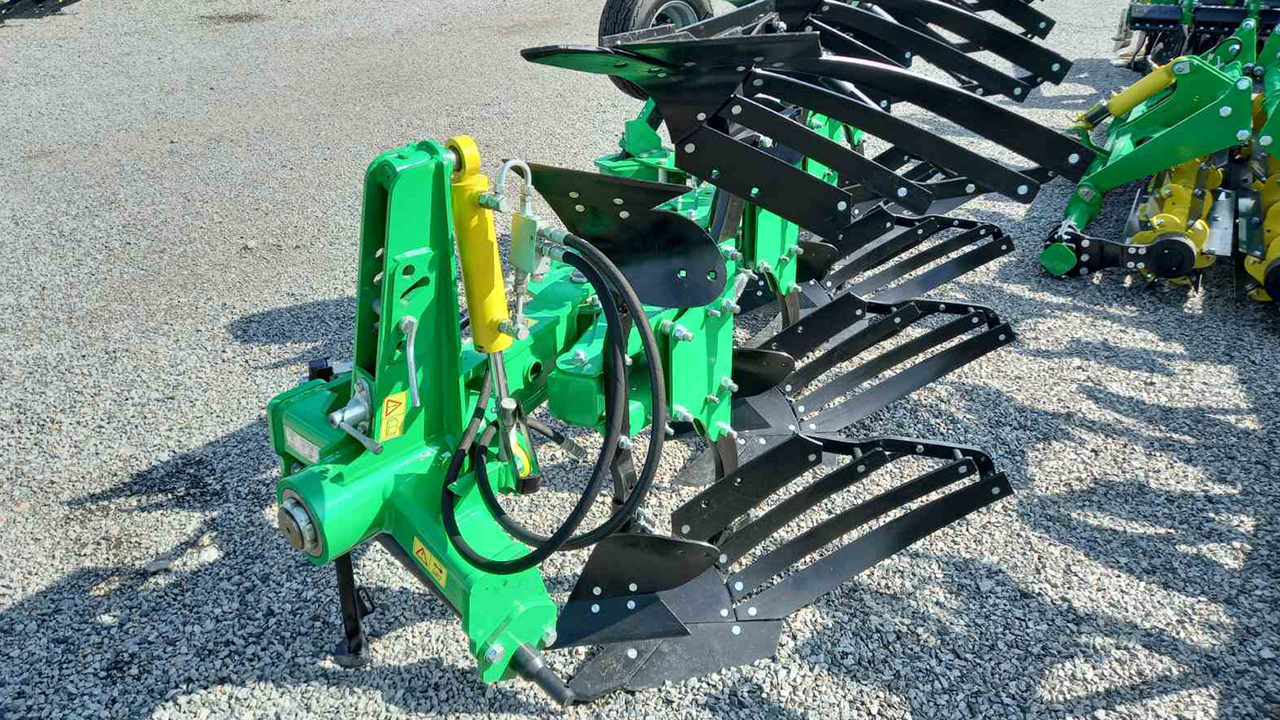 Плуг оборотный навесной PONM 3‒35+1, с предплужником и регулируемой шириной захвата (четырехступенчатое регулирование ширины захвата на 30, 35, 40 и 45 см на каждый корпус) Предназначен для гладкой пахоты почв под зерновые и технические культуры на глубину до 30 см, не засоренных камнями, плитняком и другими препятствиями, с удельным сопротивлением почвы до 0,1 Мпа (1кгс/см2) и твердостью до 4,0 Мпа (40 кгс/см2).