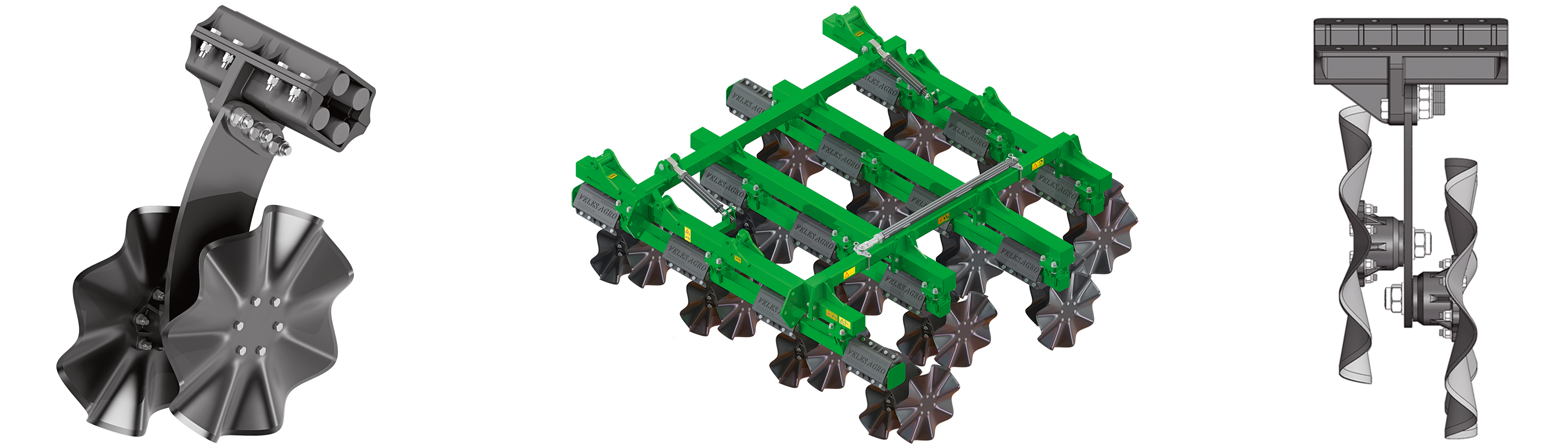 Навесная секция агрегата ZEUS VERTI-TILL с рабочими органами типа «турбодиск», диаметром 550 мм. Глубина обработки почвы 5‒10 см