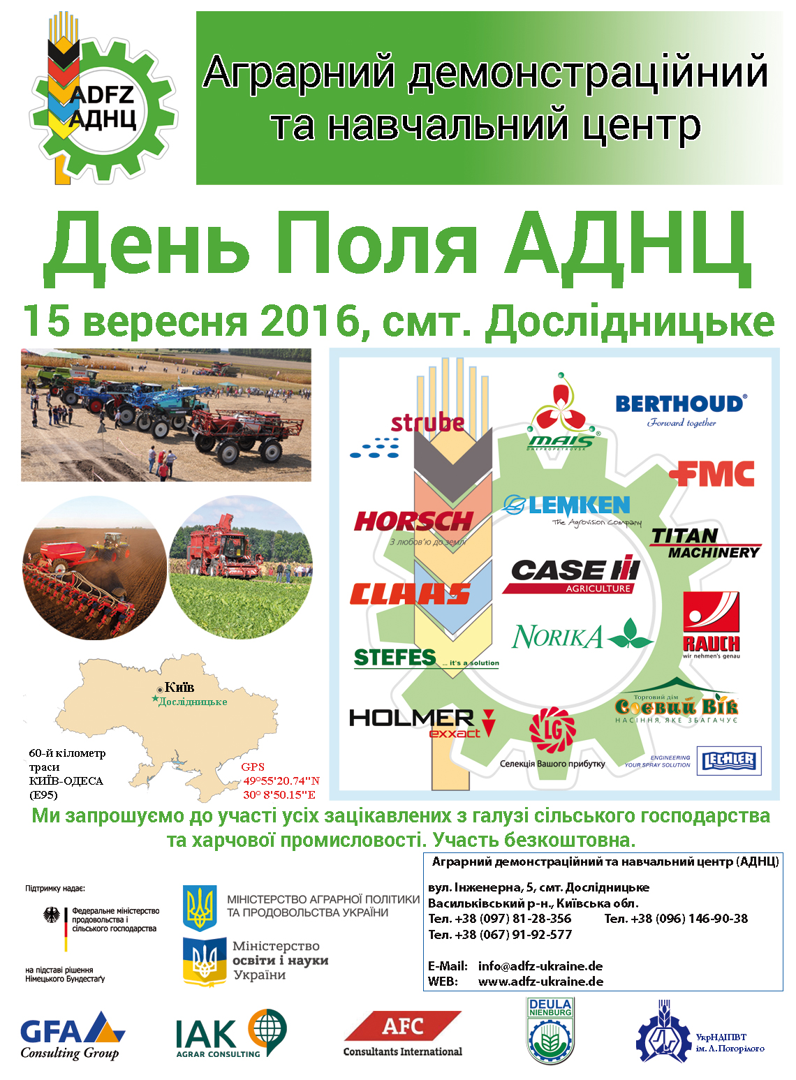 День Поля АДНЦ 15.09.2016 Київська обл. Буде представлена грунтообробна і посівна техніка «Велес-Агро», новинки 2016.