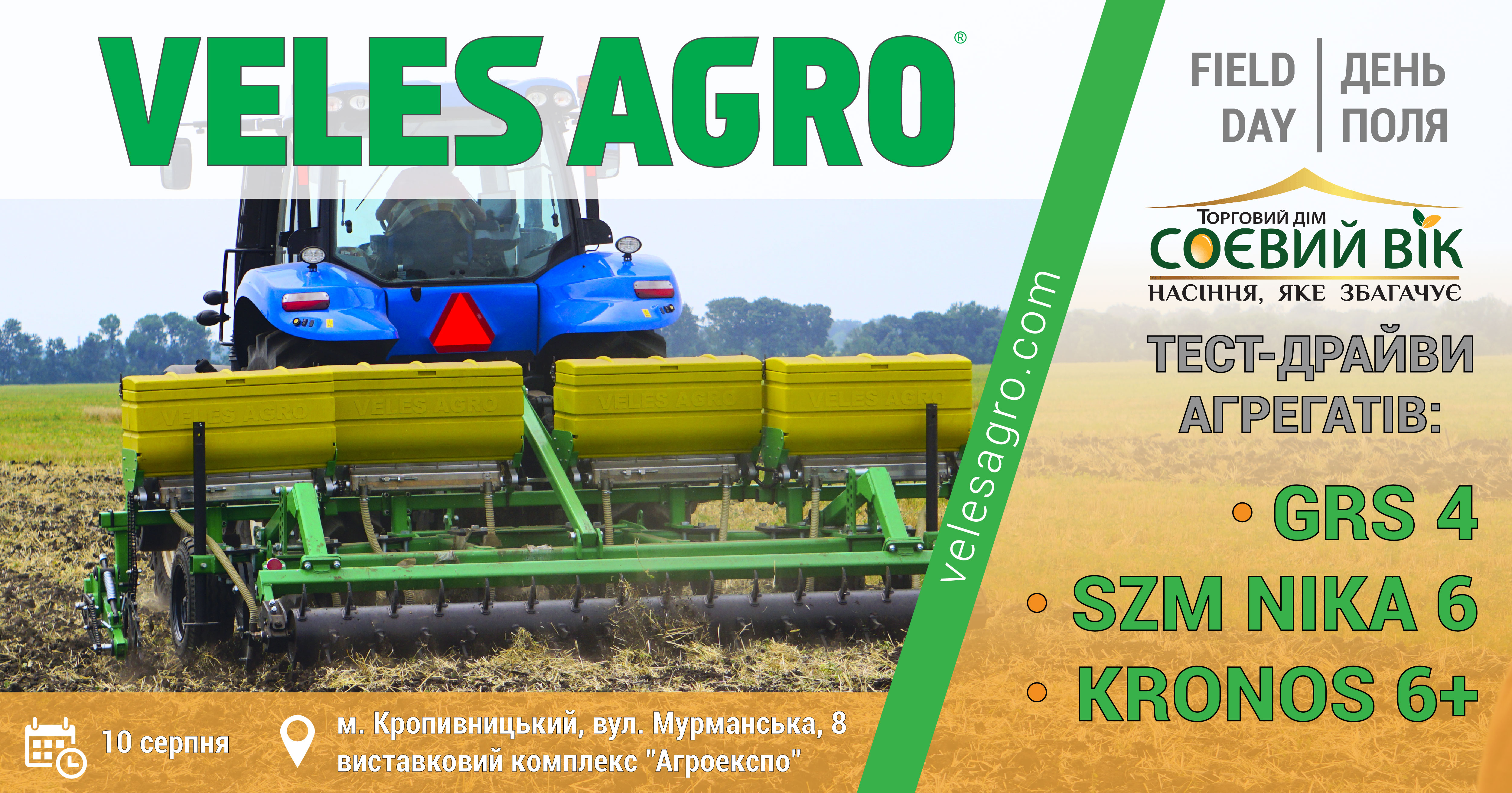Цьогоріч VELES AGRO приймає участь у Дні поля 2018, що організовує ГК UA GROUP, Торговий дім «Соєвий вік».