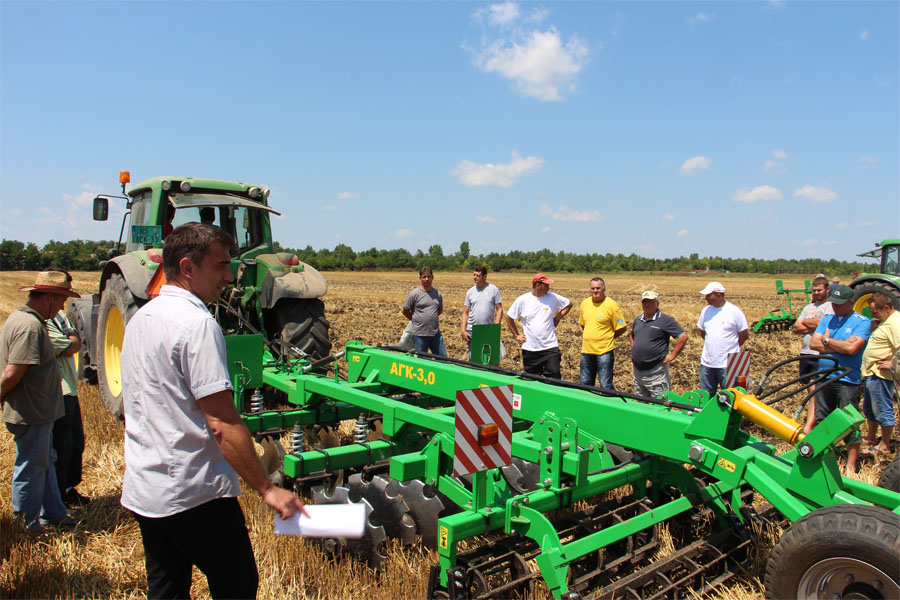 15. Juli 2015 das Unternehmen «AgroTrack» Serbien verbringen den Tag Feld Demonstration der Bodenbearbeitung und Aussaat Anlagenbau «Veles-Agro»: tieflockerer GRS-3, Sämaschine SZM Nika-4, Einzelkornsämaschine pneumatisch SPM-6M, Scheibeneggen: AGM-4,2, PDM, AGK-3,0.
