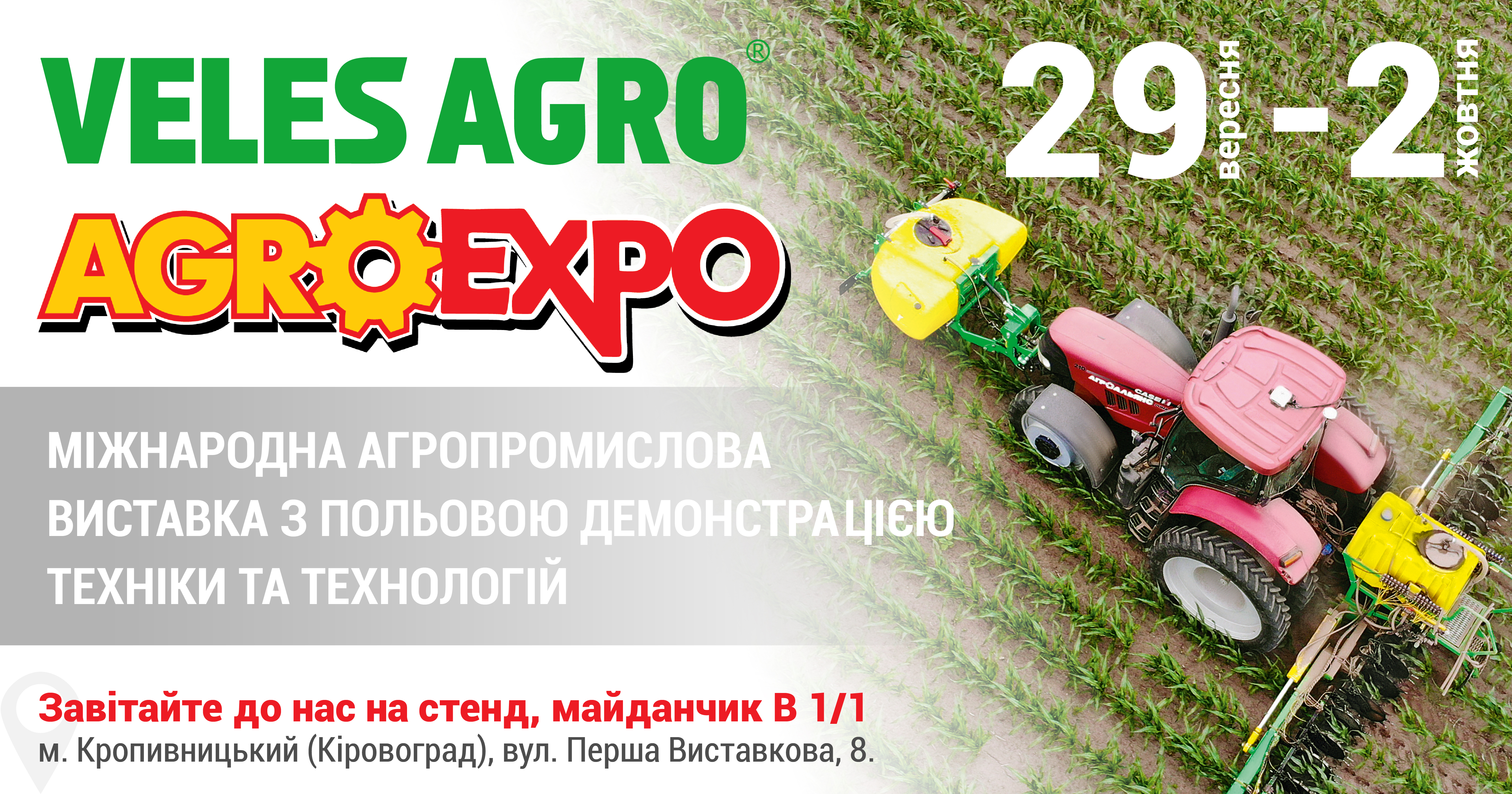Vom 29. September bis 2. Oktober 2021 nimmt VELES AGRO mit einer Feldvorführung der Ausrüstung «AGROEXPO 2021» an der internationalen Agro-Industrieausstellung teil.
