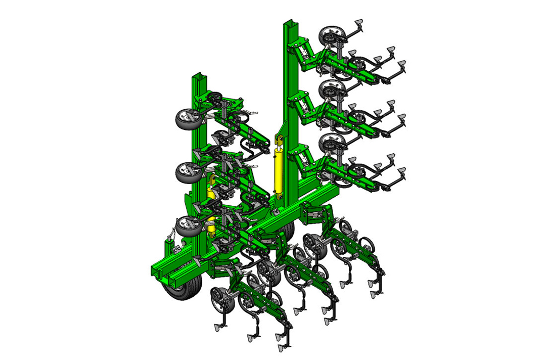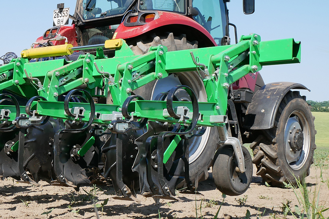 The GELIOS inter-row cultivator is designed for inter-row cultivation of high-stemmed industrial crops: sunflower, corn, sorghum, etc. It loosens the topsoil to a predetermined depth with a variable row-spacing of 45‒70 cm.