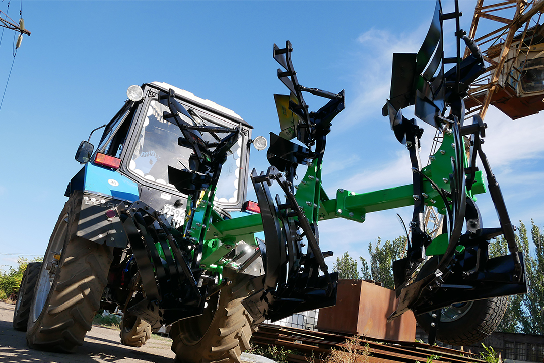 The PO reversible plow is designed for plowing soil for grain and industrial crops to a depth of 18‒30 cm, not clogged with stones, flagstone and other obstacles, with soil resistivity up to 0.09 MPa, hardness up to 3.5 MPa. The reversible mounted plow consists of a frame together with a body turning mechanism (right and left, each body is made with a strip blade).