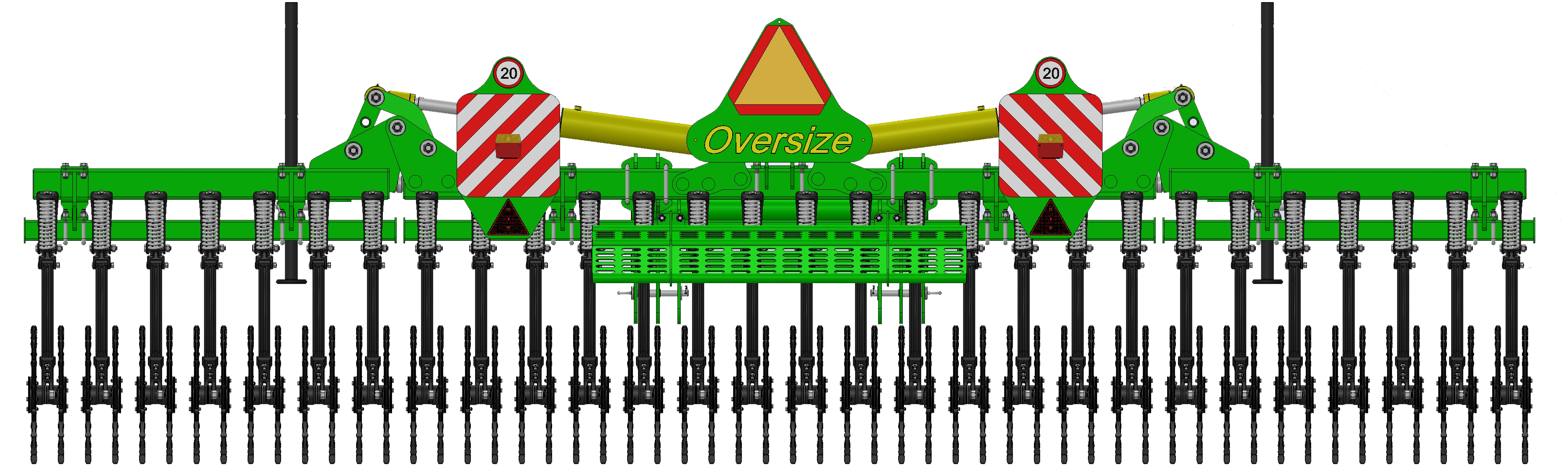 The needle tandem of the working bodies, attached to the working body of the pendulum type, allows you to perfectly copy the work surface. The elastic strut and spring safety assembly minimizes plant injuries during processing. The two-row bearing of the working body with a lip seal does not require maintenance and provides maximum service life. Spur-wheels of the working body are designed to penetrate into the soil at an angle, ensuring maximum immersion, mulching and loosening of the field surface. The barrier mesh prevents residues from entering the viewing glass and power mirrors.
