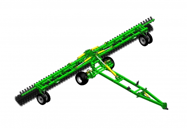 The needle tandem of the working bodies, attached to the working body of the pendulum type, allows you to perfectly copy the work surface. The elastic strut and spring safety assembly minimizes plant injuries during processing. The two-row bearing of the working body with a lip seal does not require maintenance and provides maximum service life. Spur-wheels of the working body are designed to penetrate into the soil at an angle, ensuring maximum immersion, mulching and loosening of the field surface. The barrier mesh prevents residues from entering the viewing glass and power mirrors.
