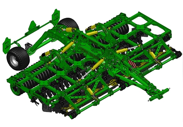 Компактні дискові борони серії KRONOS призначені для якісного поверхневого та передпосівного обробітку ґрунту. Тандемні дискові робочі органи закріплені на рамі через гумові амортизатори, що забезпечує розпушування ґрунту з незначними енергозатратами та знижує динамічні навантаження на підшипникові вузли. Диски встановлено на відстані 220 мм (110 мм по сліду) з кутом атаки 17 град, що гарантує повне підрізання рослинних решток та ґрунту. Зворотне ущільнення поверхні та розрихленого шару ґрунту виконується котком. Механізм копіювання поверхні рельєфу поля опирається на коток, що гарантує стабільність дотримання заданої глибини обробітку по всій ширині захвату агрегату. Виконання поверхневого обробітку ґрунту компактною дисковою бороною забезпечує збереження вологи у верхніх шарах, захищає ґрунт від непродуктивних її втрат; створює сприятливе ґрунтове середовище для проростання насіння бур’янів та розвитку мікрофлори; прискорює процеси перегнивання рослинних решток та збереження родючості ґрунту. При лущенні стерні зернових за один прохід агрегата забезпечується стан ґрунту, що відповідає вимогам до цієї операції в найсучасніших агротехнологіях. Стабільність та рівномірність дна обробітку дозволяє рекомендувати KRONOS і для виконання передпосівної культивації.