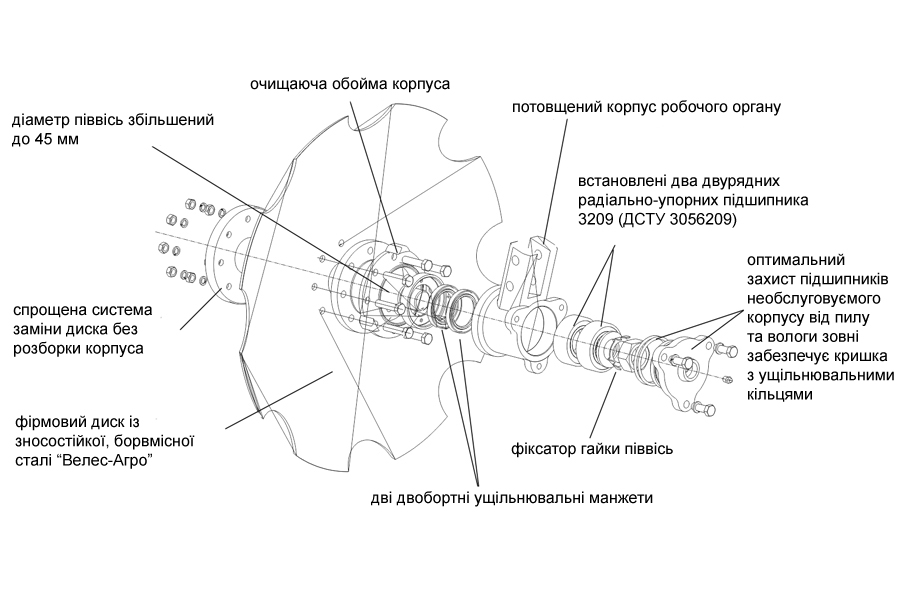 Необслуговуємий робочий корпус дискової борони PD-2.2 в зборі:
