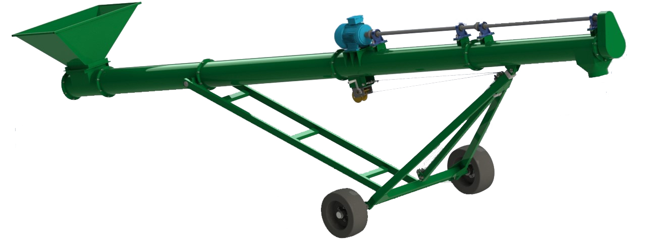 Конструкція складається із закритої металевої труби, всередині якої обертається вал з гвинтовими лопатями. При обертанні сировина просувається вгору по гвинту.