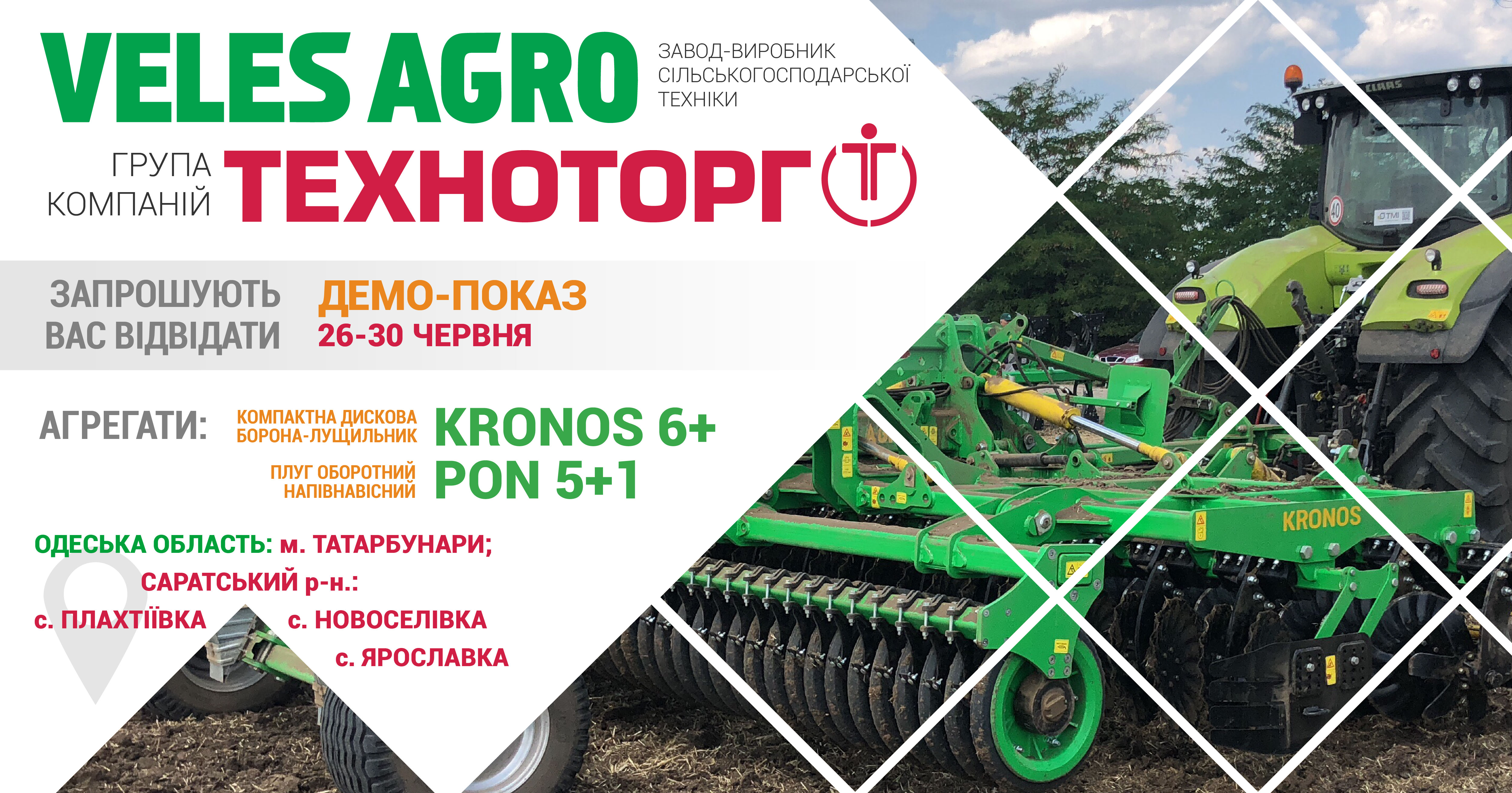 С 26 по 30 июня компания VELES AGRO и группа компаний ТЕХНОТОРГ проводят в Одесской области демо-показы нового формата!