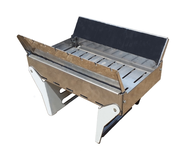 Мангал дорожный, портативный, раскладной с защитной решеткой. Продукты готовятся на шампуре, а защитная решетка поможет предотвратить попадание пепла и прочего мусора в пищу.