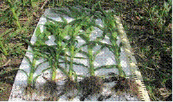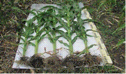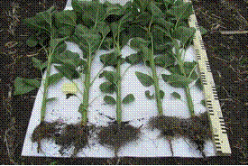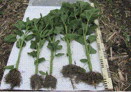 По посівам кукурудзи спостерігається дещо інша ситуація: в обох технологіях рослини кукурудзи мають близькі характеристики, в той же час коренева система потужніша в варіанті Strip-till (мал.5). Середня висота рослин кукурудзи по технології strip-till на 65 день складає всередньому 104 см, що на 4 см менше ніж в технології mini-till. Але, не зважаючи на меншу висоту, середня маса рослин в технології strip-till більша на 20 г, що вказує на вищу потужність стебел.